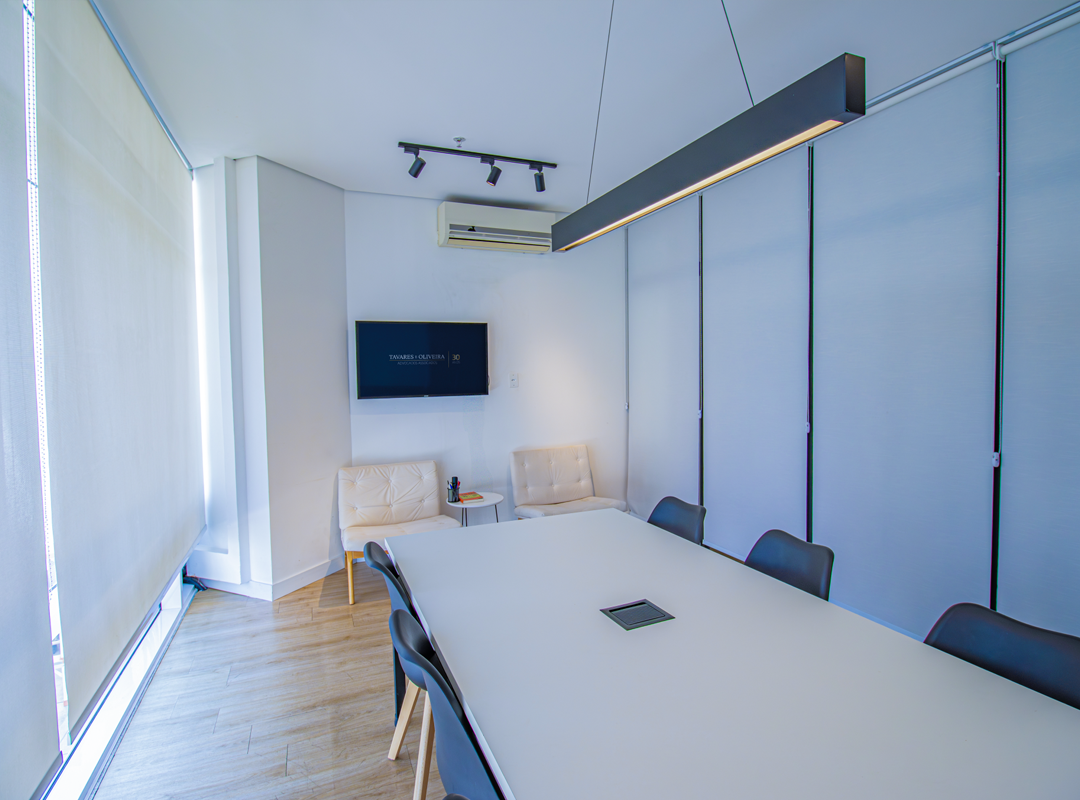 A sala de reuniões do Tavares e Oliveira Advogados Associados localiza-se no 17º. Andar do Edifício E. Office Design Berrini, no bairro do Brooklin, em São Paulo, na Av. Engenheiro Luiz Carlos Berrini, 1.748, com capacidade para até 6 pessoas e área de espera para mais 2 pessoas, possui Ar-Condicionado, TV, WiFi Empresarial, Cabo HDMI, Lousa Branca, Luz Natural, Banheiros, Filtro de Água e Cafeteira Expressa.